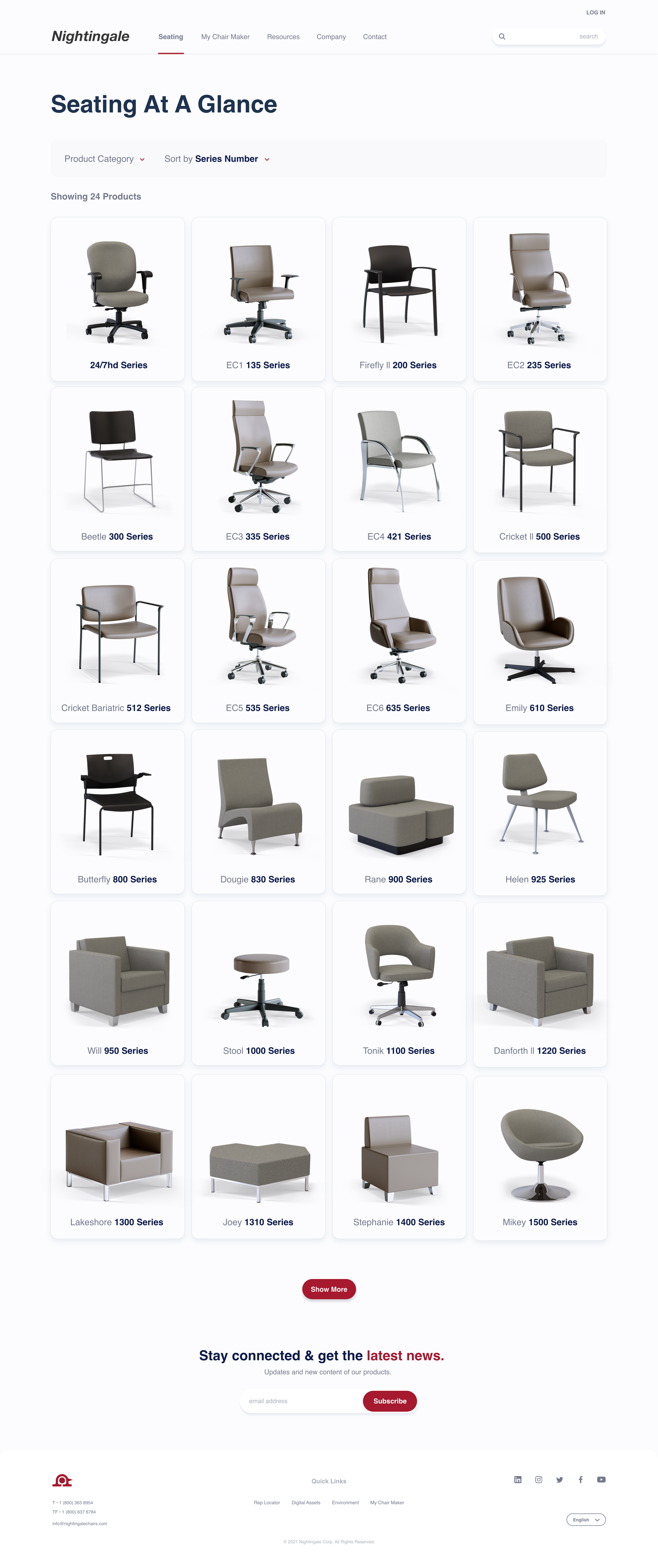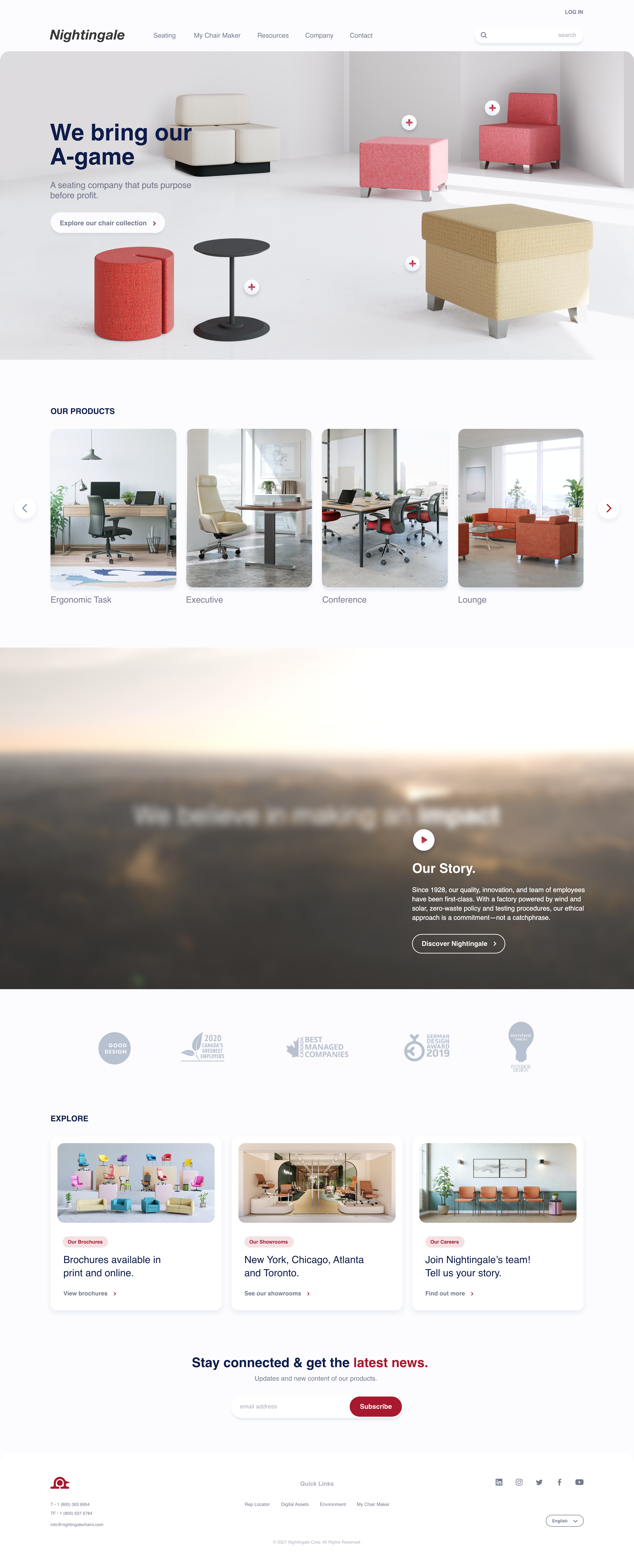Nightingale is a seating manufacturer that is committed to building quality ergonomic products with minimal carbon footprints that are recyclable, sustainable and durable. The Nightingale website offers seating options, virtual literature, My Chair Maker app, and assets for designers.